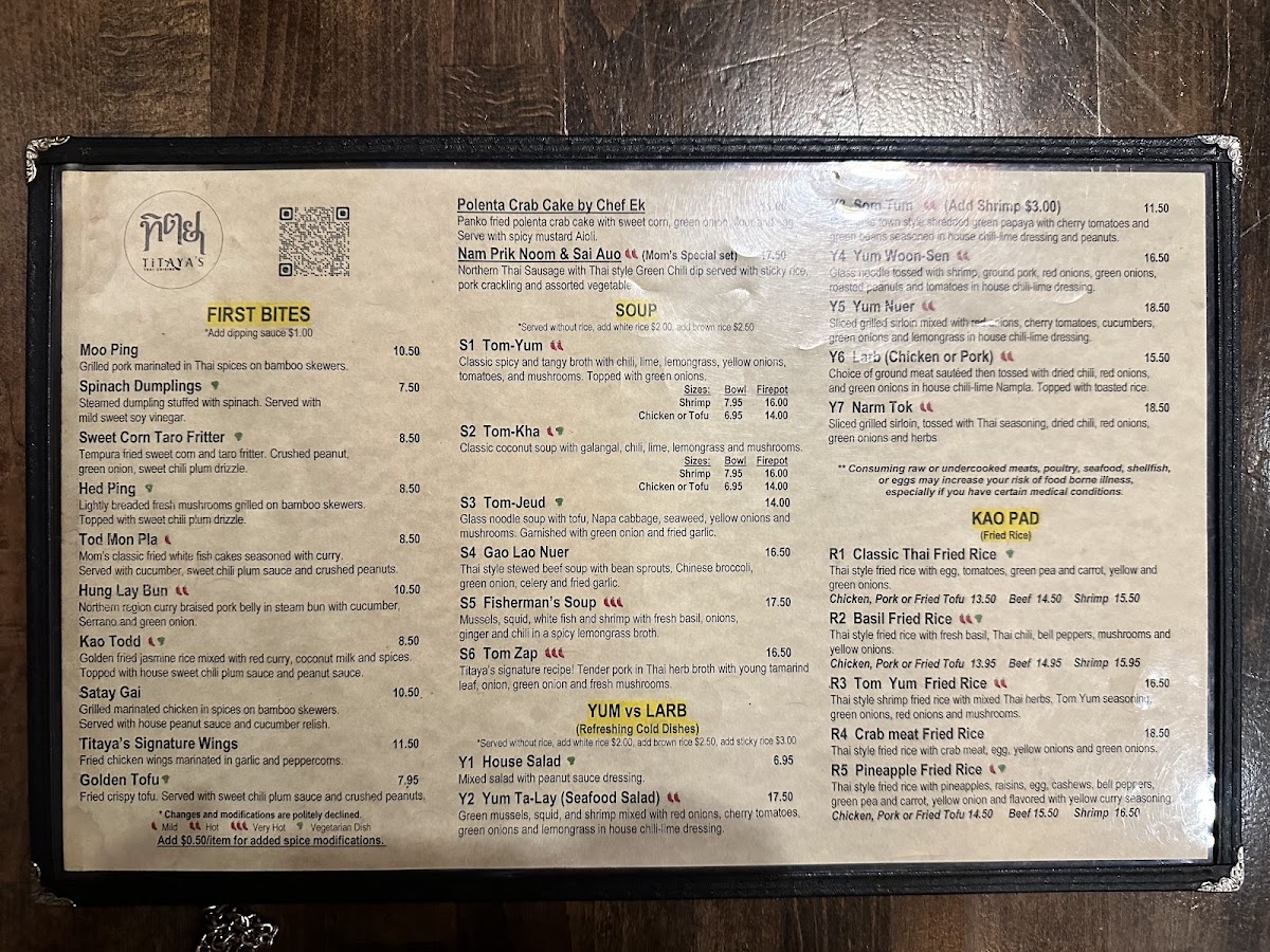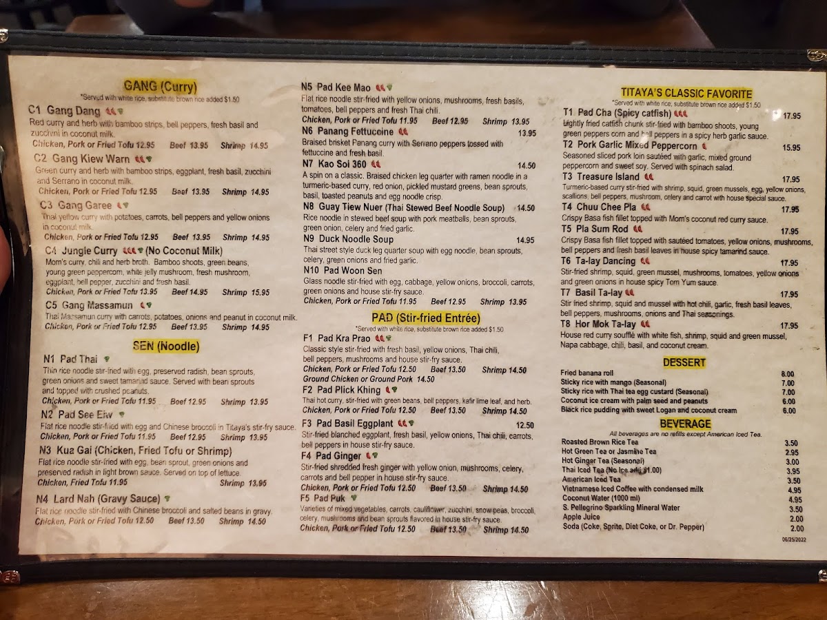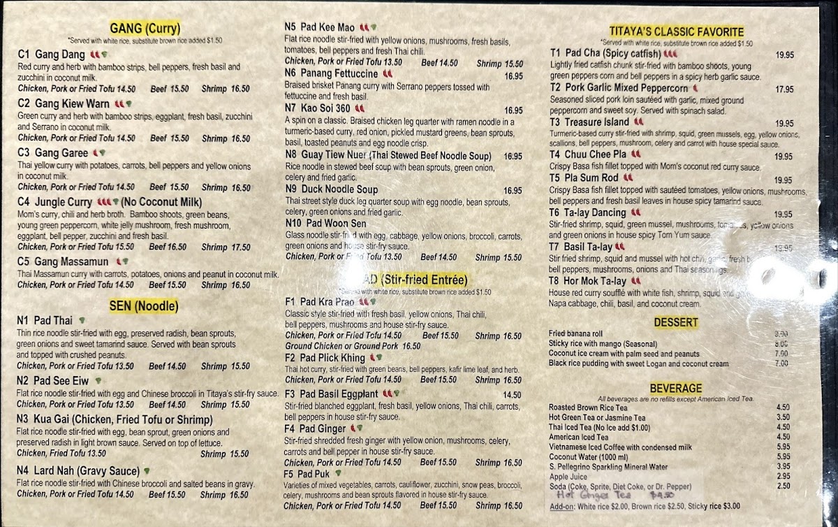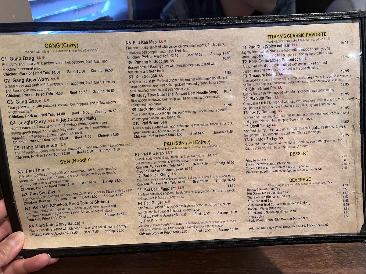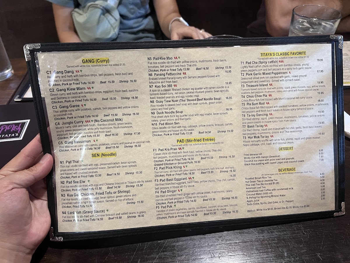 Titaya's Thai Cuisine Menu