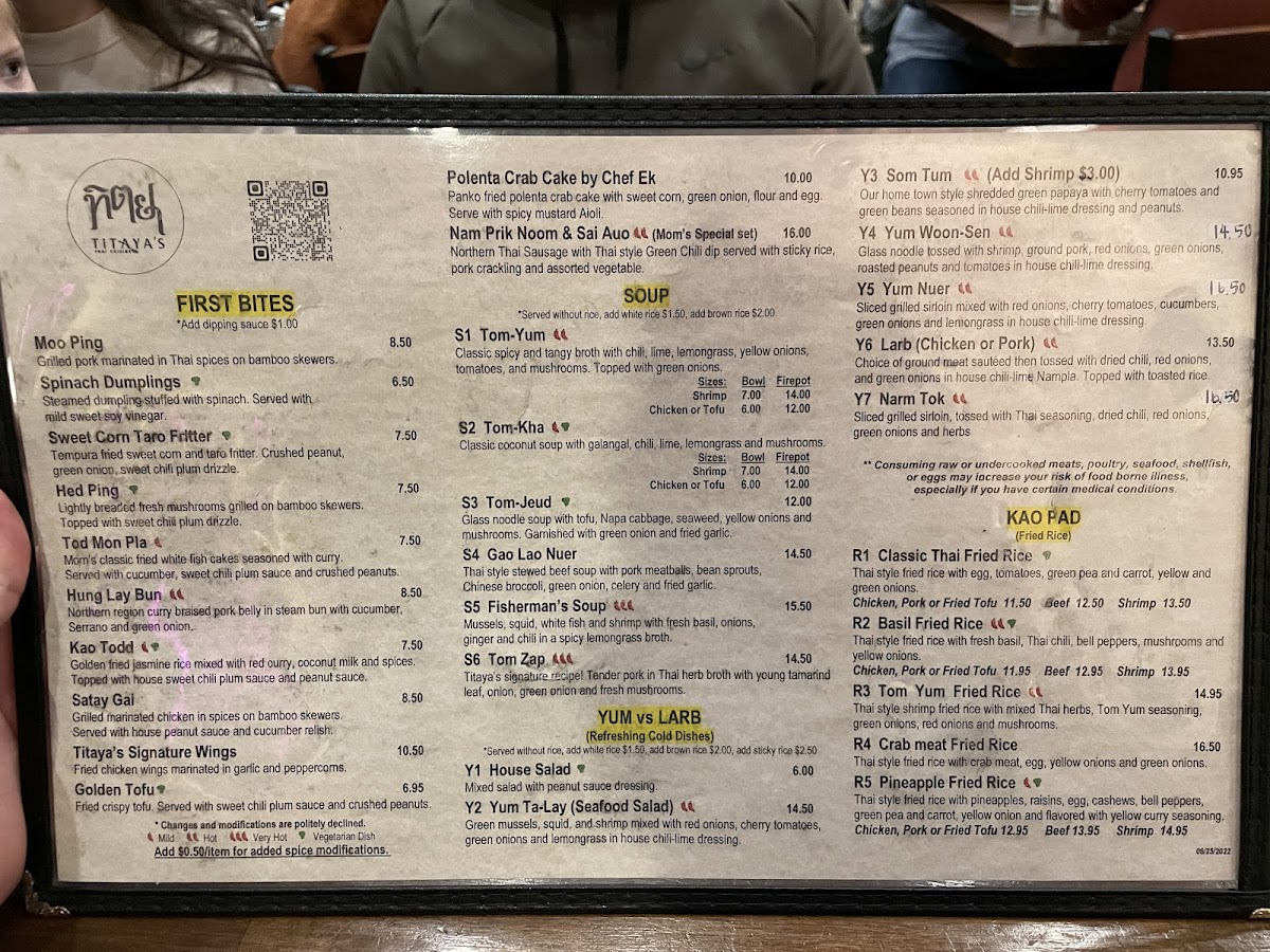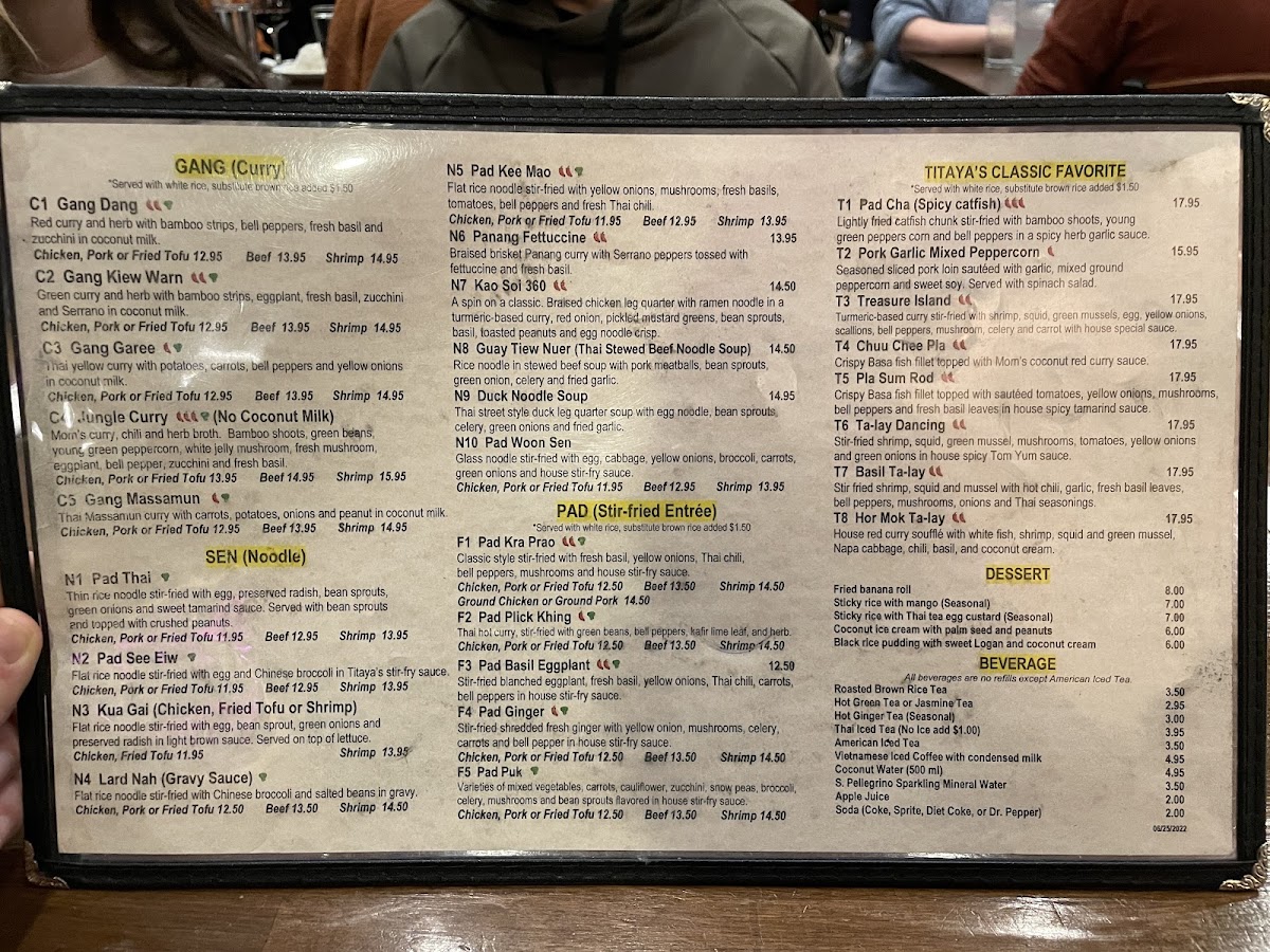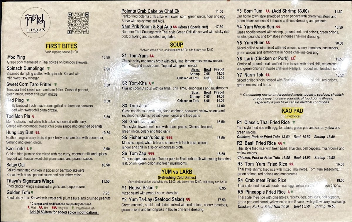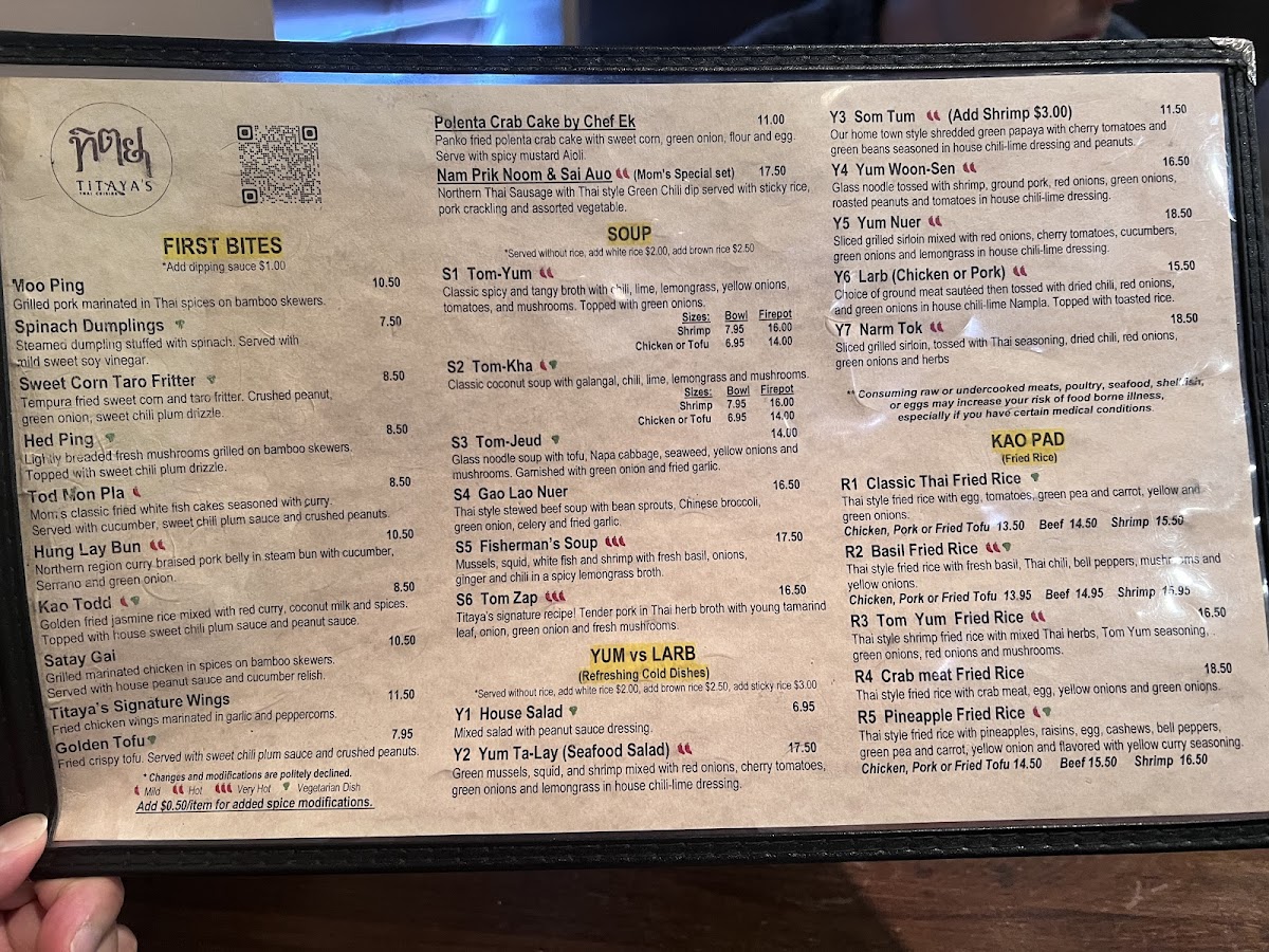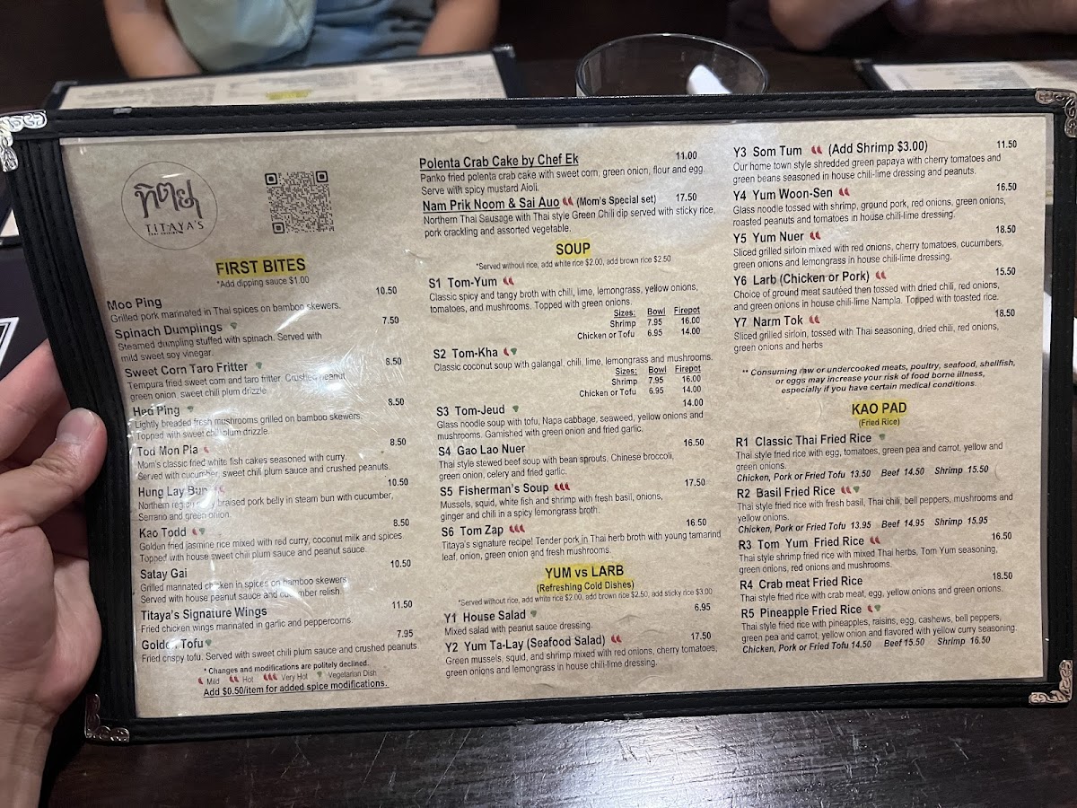 Titaya's Thai Cuisine Menu